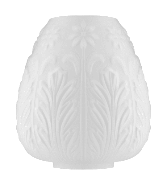 Pantalla de queroseno clásica, soplada en el molde de hierro fundido de Karlskrona Lampfabrik, con patrón de hojas. Las formas con superficies estampadas son significativamente más costosas de diseñar y fabricar que las pantallas de lámparas rotacionalmente simétricas convencionales. Base 8,5cm.