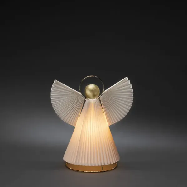 Elegante ángel de papel con detalles plisados y cabeza dorada: una hermosa decoración que encaja perfectamente en la ventana o en la mesa. Crea un ambiente tranquilo y cálido en tu hogar durante el Adviento y la Navidad. Fácil de colocar y un elegante contraste con las decoraciones navideñas tradicionales. Un favorito año tras año. Se suministra con cable blanco de 5 m, interruptor de alimentación y enchufe. Fuente de luz no incluida.