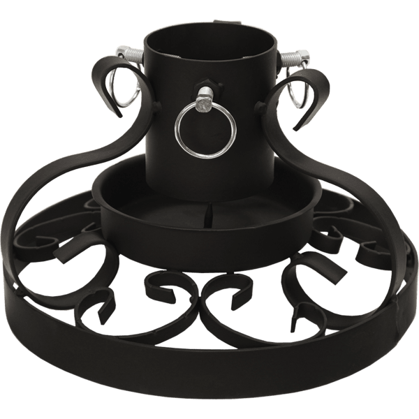 Hermoso soporte para árbol de Navidad de interior realizado en hierro forjado negro con finos detalles. Adecuado para diámetros de tronco de 30–80 mm y alturas de abeto de hasta 220 cm. Tiene capacidad para aproximadamente 0,5 l de agua.