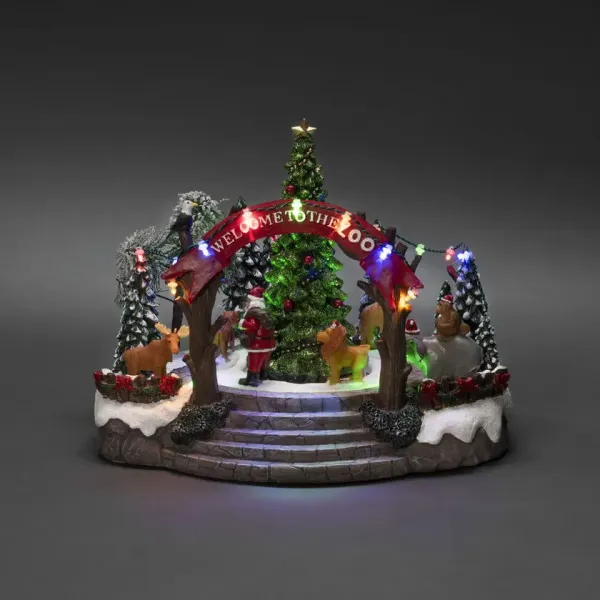 Bienvenido al paraíso invernal más divertido de la temporada navideña: ¡un zoológico con atuendo navideño! Esta decoración navideña mecánica presenta una escena colorida con 19 luces LED de color blanco cálido, música, animales y Papá Noel alrededor de un árbol de Navidad brillante. Una decoración encantadora que transmite alegría e imaginación a partes iguales. Funciona con 3 pilas AA (1,5 V, no incluidas). Transformador con cable negro de 1,8m de longitud y enchufe incluido. Iluminación LED integrada.