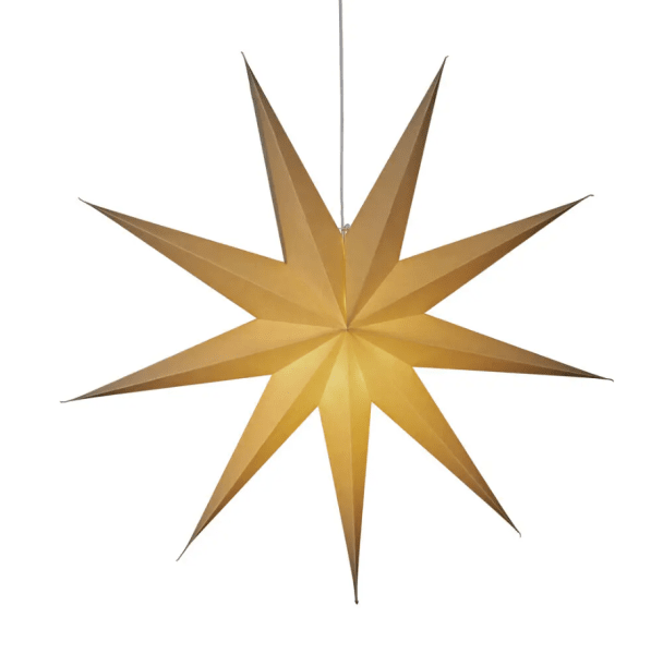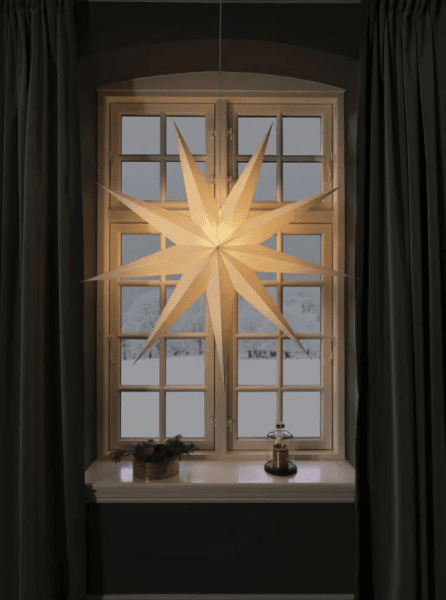 Ilumina la oscuridad de diciembre con esta clásica estrella de papel en tono gris/beige. Con su elegante diseño y luz suave, crea un ambiente navideño tranquilo y acogedor. Perfecto para colgar en una ventana o en una hermosa pared: una decoración atemporal que agrega elegancia simple a cualquier habitación. Se suministra con cable blanco de 5 m, interruptor de alimentación y enchufe. Fuente de luz no incluida.