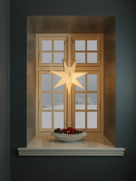 Ilumina la oscuridad de diciembre con esta clásica estrella de papel blanco. Con su elegante diseño y luz suave, crea un ambiente navideño tranquilo y acogedor. Perfecto para colgar en una ventana o en una hermosa pared: una decoración atemporal que agrega elegancia simple a cualquier habitación. Se suministra con cable blanco de 5 m, interruptor de alimentación y enchufe. Fuente de luz no incluida.