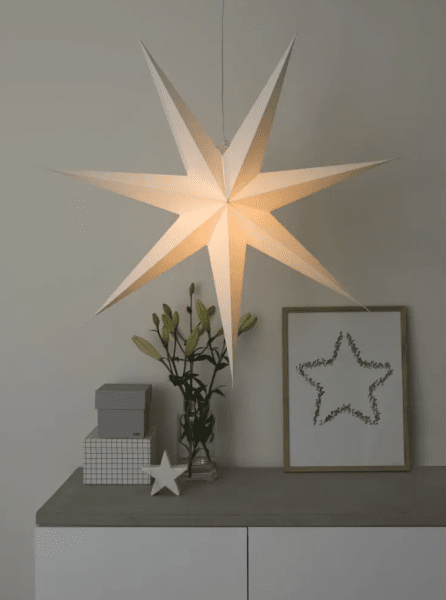 Ilumina la oscuridad de diciembre con esta clásica estrella de papel en gris y beige. Con su elegante diseño y luz suave, crea un ambiente navideño tranquilo y acogedor. Perfecto para colgar en una ventana o en una hermosa pared: una decoración atemporal que agrega elegancia simple a cualquier habitación. Se suministra con cable blanco de 5 m, interruptor de alimentación y enchufe. Fuente de luz no incluida.