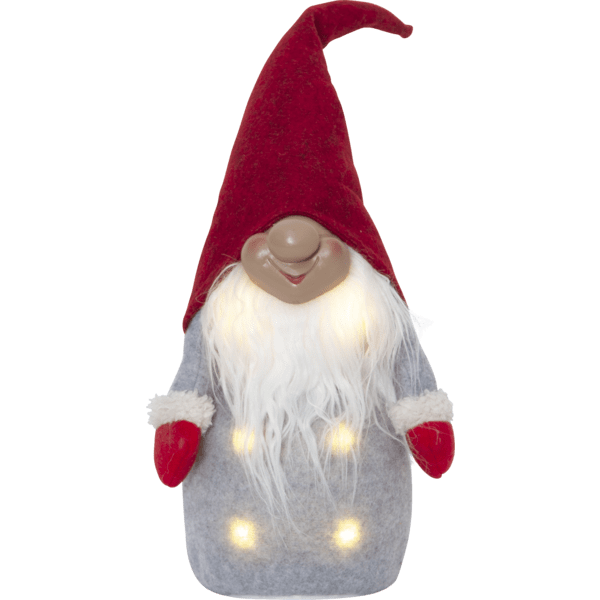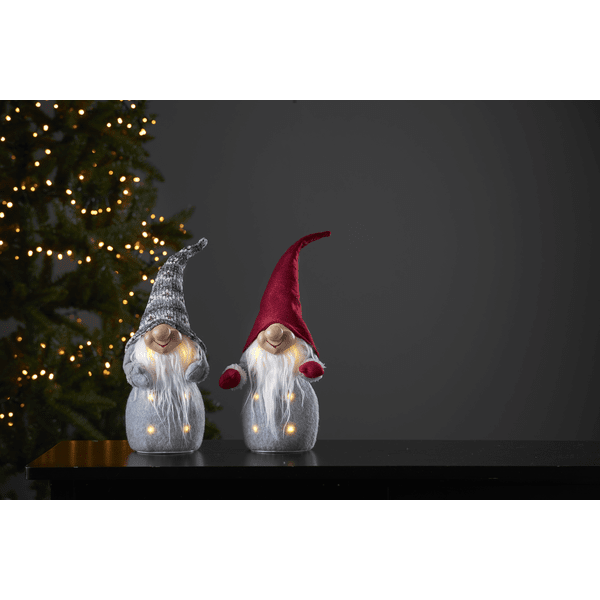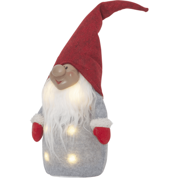 Acogedor Papá Noel con gorro rojo y guantes rojos. Las luces LED iluminan el cuerpo y crean un ambiente acogedor. Funciona con 3 pilas AA, que no están incluidas.