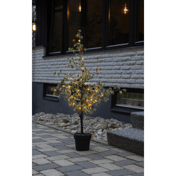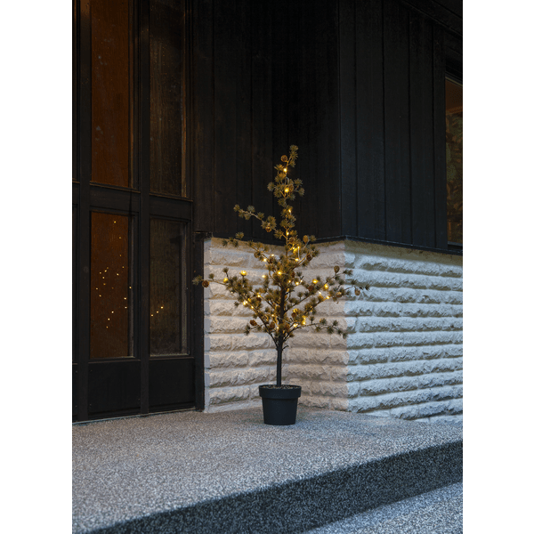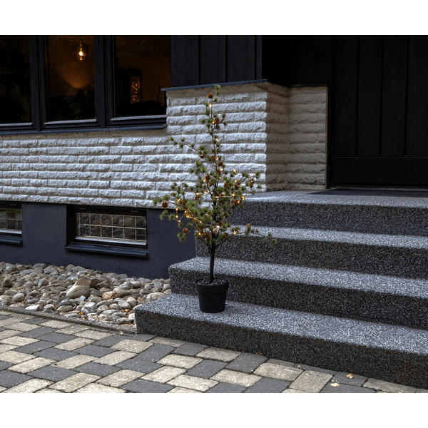 El abeto Larix tiene ramas decorativas con agujas que se asemejan a las del alerce. Están hechas de polietileno, una opción ecológica. Con 40 luces blancas cálidas, brilla con belleza y es perfecto como acogedor árbol para escaleras, tanto en exteriores como en interiores, por ejemplo, en un pasillo o en la habitación de los niños. Funciona con 3 pilas AA (no incluidas) y cuenta con temporizador (6 horas encendido, 18 horas apagado, repetición). En modo temporizador, el árbol se iluminará durante aproximadamente 20 días. El cable del compartimento de las pilas tiene 30 cm de largo.