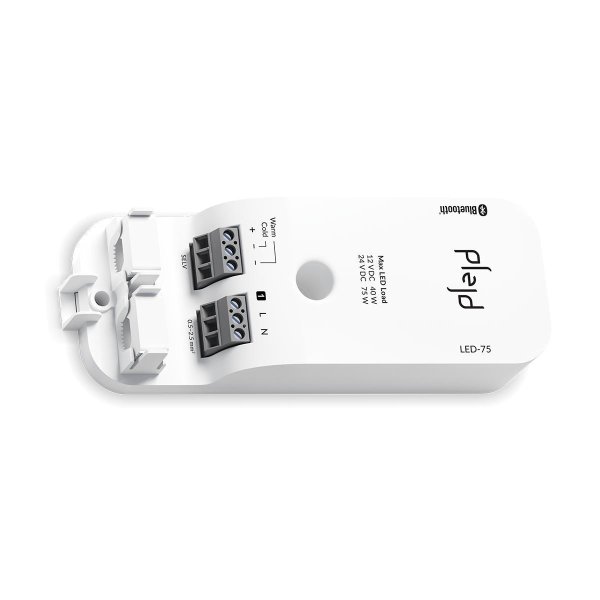 Controlador LED de 75 W para tiras LED blancas o monocromáticas ajustables de 12/24 V CC, con una potencia de hasta 75 W. El producto cuenta con una entrada de control y se puede controlar de forma inalámbrica mediante la aplicación u otros productos Plejd. También es posible el control automático con funciones de tiempo integradas, como relojes astronómicos y semanales. Montaje en pared con tornillos (no incluidos). Dimensiones: 162 x 62 x 34 mm. Grado de protección IP: IP20.
