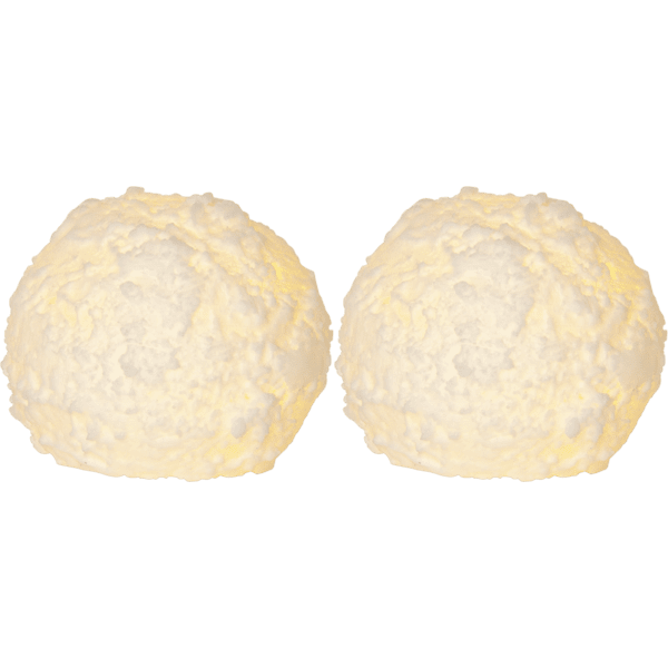 Velas de cera en paquete de 2 en forma de bola de nieve que brillan en blanco cálido. Tienen función de temporizador y al encender el interruptor las luces brillarán durante 6 horas y se apagarán durante 18 horas en modo temporizador, en una fase de repetición. Funciona con 2 pilas CR2032 (incluidas). Tiempo de combustión aprox. 80 horas.
