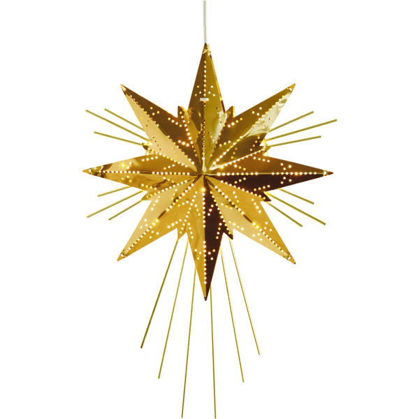 Estrella de metal color latón con muchos detalles bonitos. Una preciosa estrella navideña para decorar ventanas. Incluye cable blanco de 3,5 m y enchufe. Bombilla no incluida.