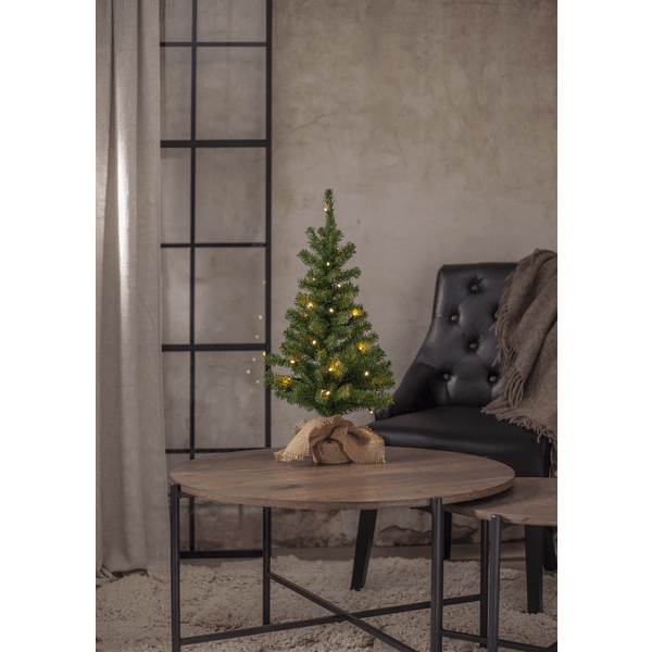 Árbol de Navidad decorativo de mesa con 20 luces LED de color blanco cálido. Este hermoso árbol crea un ambiente navideño festivo en tu hogar. Incluye temporizador (6 horas encendido, 18 horas apagado, repetición). Incluye un cable de 50 cm al compartimento de las pilas. El árbol funciona con 3 pilas AA (no incluidas). Aproximadamente 80 horas de luz. Solo para uso en interiores.